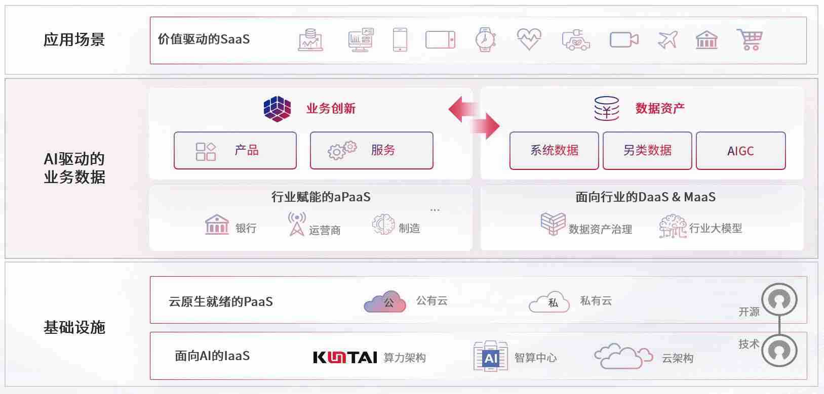 数字时代,,,,围绕企业数字化转型的关键要素,,,尊龙数码开创性的提出数云融合战略和技术体系框架,,,,着力在云原生、、、数字原生、、、、AI原生和信创产业上架构产品和服务能力,,,为处在不同数字化转型阶段的快消零售、、、、汽车、、金融、、、、医疗、、、、政企、、、、教育、、、、运营商等行业客户提供泛在的敏捷IT能力和融合的数据驱动能力,,构建跨界融合创新的数字业务场景和新业务模式,,助力企业级客户建立面向未来的核心能力和竞争优势,,,全面推动社会的数字化、、智能化转型升级。。。。