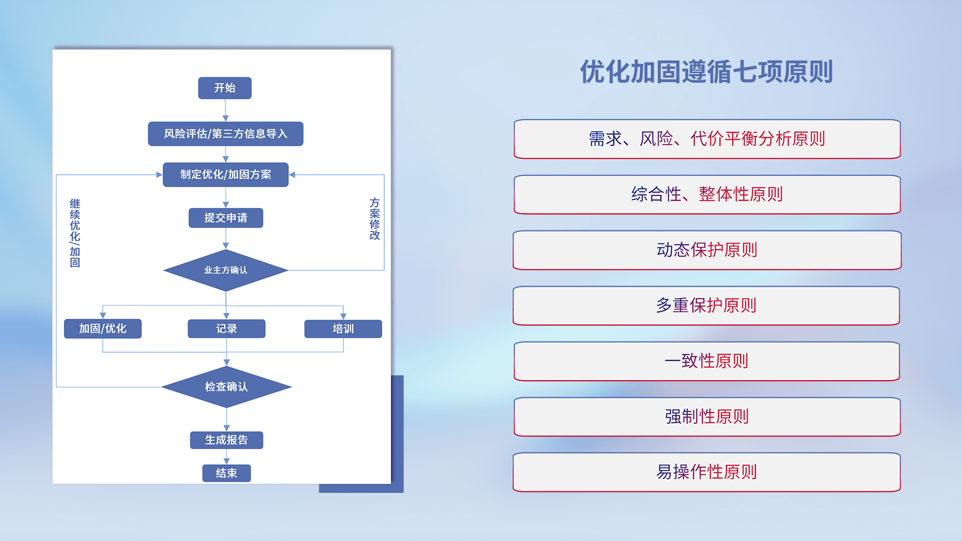 最大程度利用现有资产,,对评估发现的问题进行封堵与整改,,防止漏洞被利用,,,,提升整体网络安全性,,为客户带来高标准的优化加固服务。。